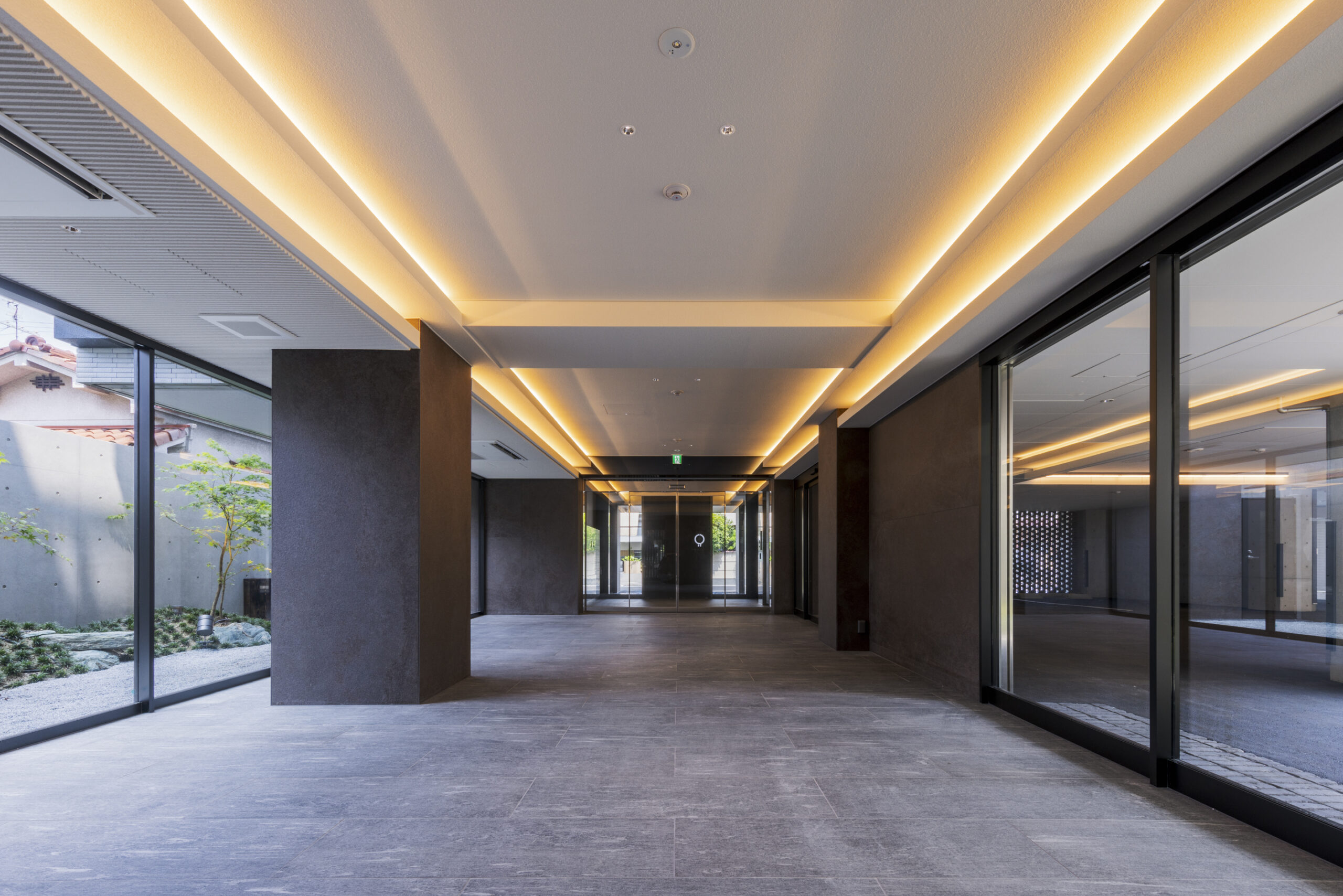 周辺環境への最大限の配慮と、都市居住における安全性、利便性、快適性の追求が最大の課題となった。1階はゆったりとしたエントランス、駐車場に開放し、57㎡から130㎡までの24戸を、2階から5階に配した。